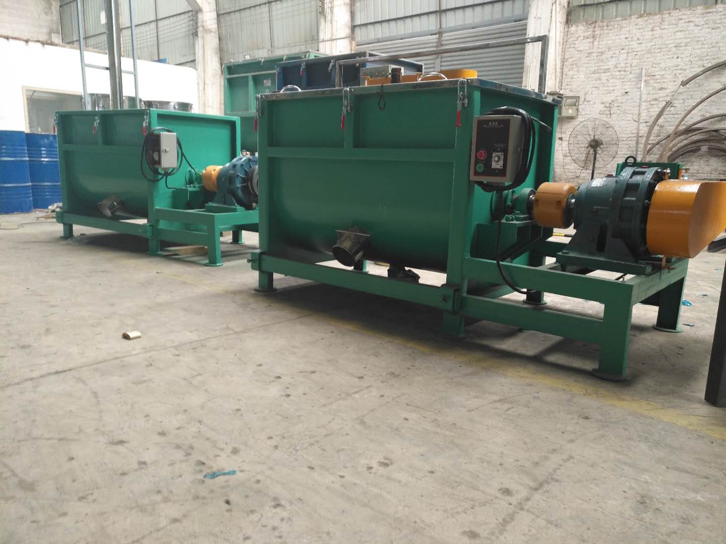 饲料卧式球速体育在线客服由安装于搅拌轴上的内外径螺旋带动桶体内物料,使搅拌器在桶体内最大范围翻动物料。搅拌器结构上,螺旋设计成内外、左右互为反螺旋,搅拌器工作时内螺旋带动靠近轴心处物料做轴心旋转,轴向由内至两侧推动,外螺旋带动靠近桶壁物料做轴心旋转,轴向由两侧至内推动,于是造成物料在桶体内对流循环、剪切渗混,完成物料在较短时间内快速均匀混合。
