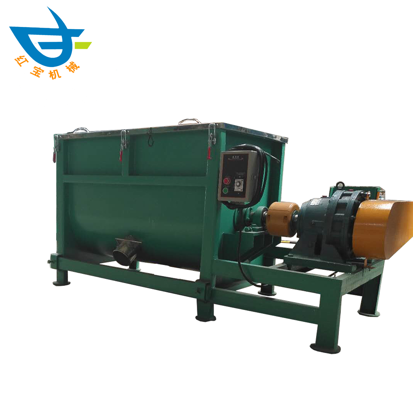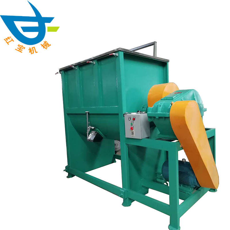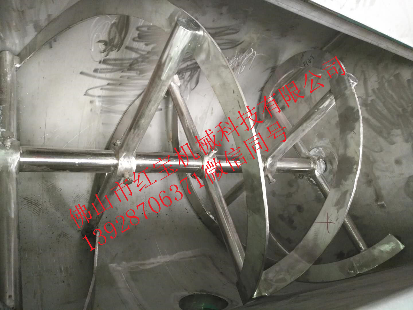 广东卧式球速体育在线客服的搅拌器结构设计成内外三层螺旋叶片,混合机工作时,内、外螺旋带动筒体内物料翻动,内螺旋带动靠近轴心处物料做轴心旋转,转向由内至两侧推动,物料被推向筒壁四周;外螺旋带动顶部物料以伞状飞抛散落,回至底部,同时做轴心旋转,轴向由两侧至内推动,物料被推向内部聚集,使螺带搅拌器在筒体内最大范围翻动物料,物料在筒体内对流循环,剪切渗混,混合不留盲区,完成物料在短时间内快速均匀混合。