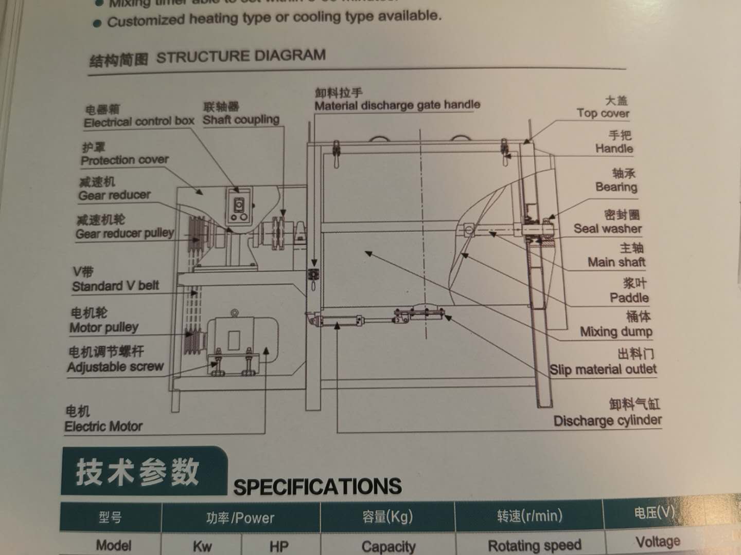 1、料桶及桨叶全不锈钢制造,清洗容易、避免锈蚀;